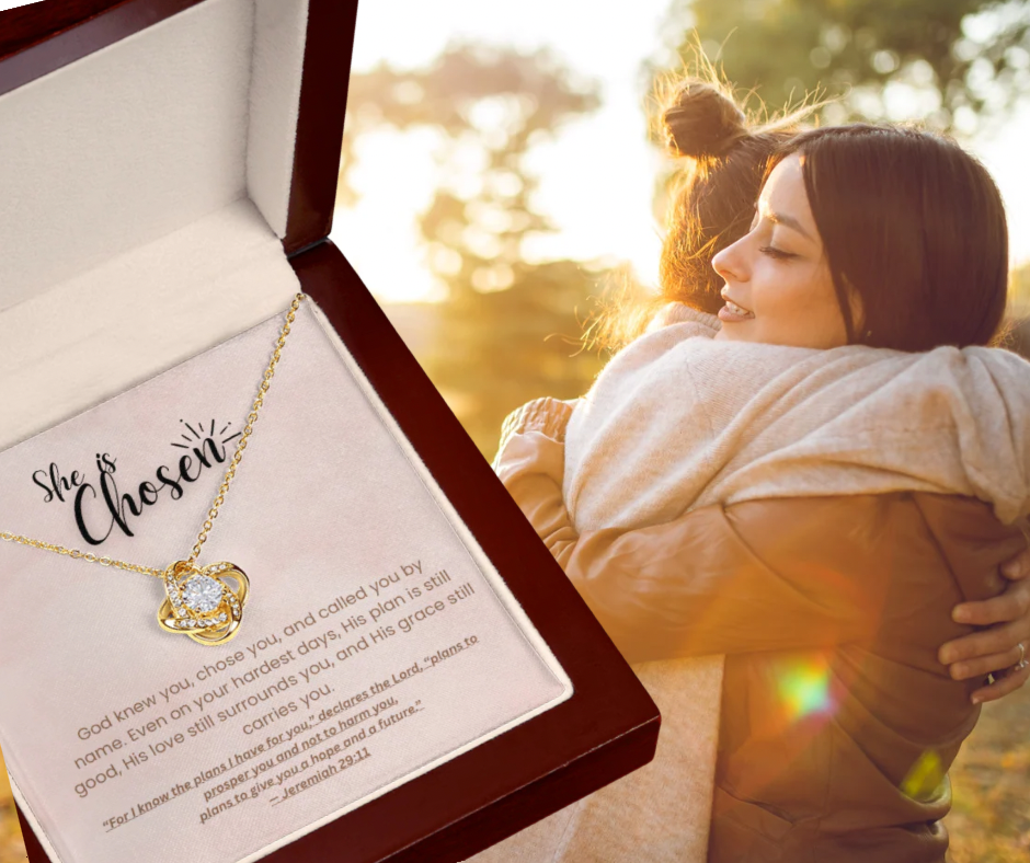 She Is Chosen – Faith-Based Christian Necklace with Jeremiah 29:11 Message Card